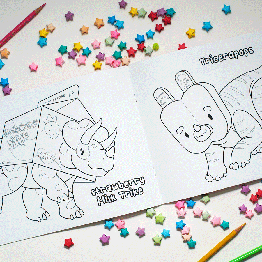 My very first colouring book!! These premium-quality colouring books feature 14 Dessert Dinos™ and measure 11x8.5 inches (22x8.5 inches when open), making them suitable for colouring-enthusiasts of all ages. Made with thick paper and satin-laminated covers. Each preorder will include a free 3" sticker! Printed in Canada🍁