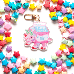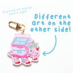 Strawberry Milk Trike Keychain | Double-sided Dessert Dino Acrylic Charm